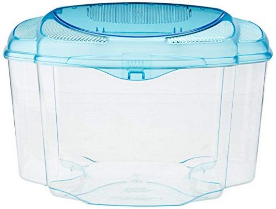Это приспособление относится к категории аква-террариумов. Предназначено для транспортировки рептилий, водоплавающих и беспозвоночных. Заявленные габариты: 270х170х180 мм. Коэффициент полезного объема составляет 6 л. На крышке расположено небольшое отверстие. Несмотря на то, что изделие изготовлено из пластика, является хрупким.