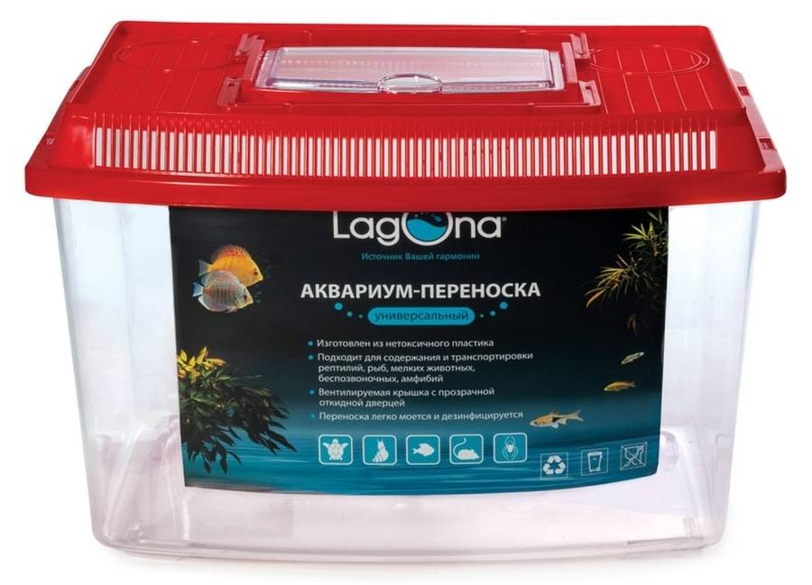 Мало кто задумывается о необходимости подобных изделий до того момента, пока не приходит время чистить аквариум или покупать новых рыбок. Конструкция предназначена для транспортировки не только водоплавающих, но и рептилий, мелких животных и беспозвоночных. Для изготовления корпуса применяется ударопрочный пластик. Устройство оснащено откидной крышкой для большего удобства в последующем пользовании. Размеры: 300х195х200 мм, при весе – 640 г.