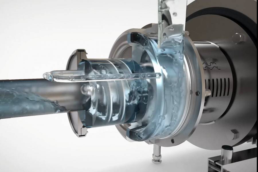 Под действием вращения диска жидкость попадает в специально обустроенную полость корпуса, а затем, пройдя сквозь камеру, выталкивается наружу