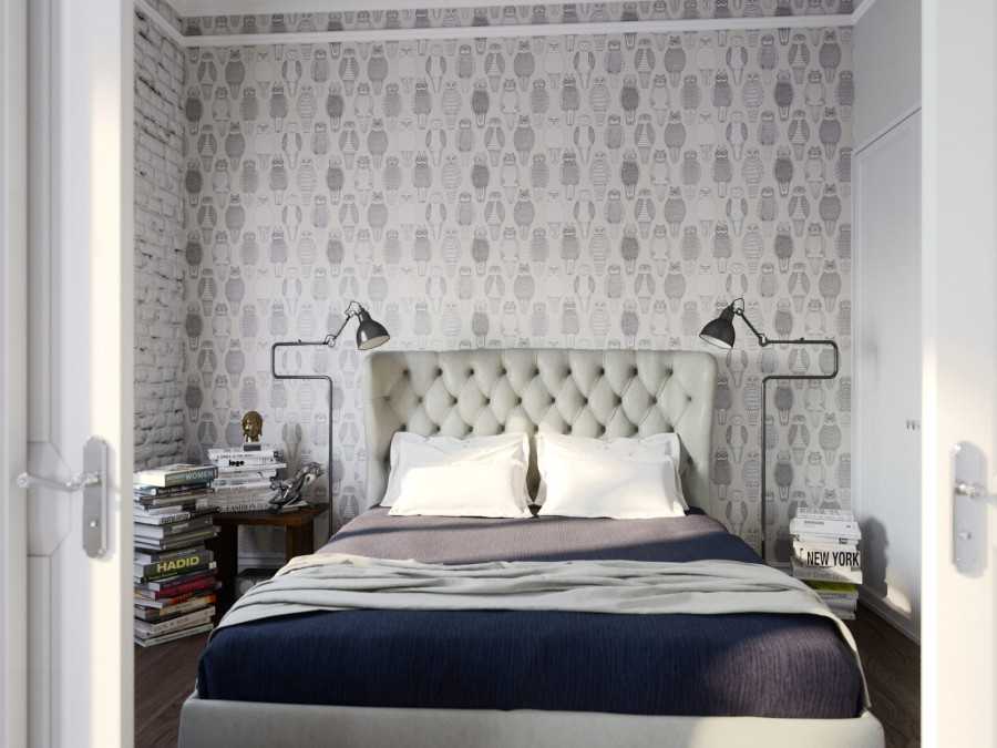 Обои под серый кирпич будут прекрасным вариантом для создания акцентной стены в спальне стиля лофт на фоне белых или персиковых стен. Также кирпичная имитация подойдет для прихожей и стены у камина в гостиной.