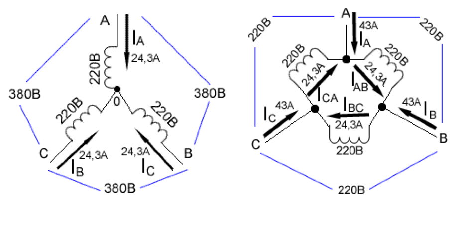 При подключении электромоторов, важно тщательно изучить паспорта, сертификаты и инструкции, потому что в импортных моделях встречается часто «треугольник», адаптированный под наши 220В. Такие моторы при игнорировании этого и включении «звездой, просто сгорают