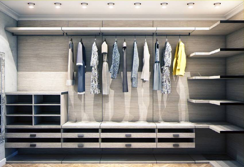 При оформлении комнаты не нужно забывать о внешней ее привлекательности. Эстетическая составляющая стеллажей влияет на настроение. Если утро будет начинаться с уютной комфортабельной комнаты для одежды, то день наверняка будет удачным.