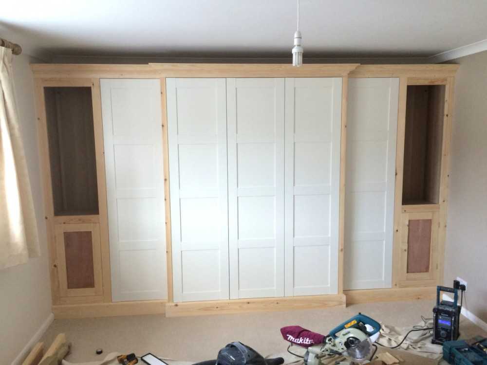 - встроенные модели — расположение шифоньеров может быть разное. Их устанавливают в разных частях комнаты, монтируют в ниши. Модели бывают шириной во всю стену, высотой до потолка.