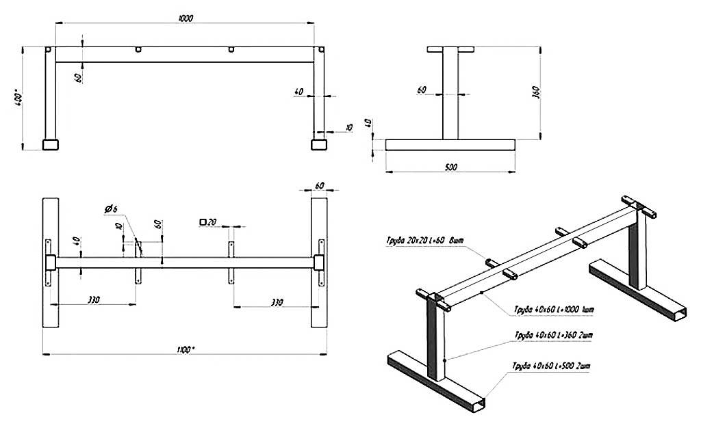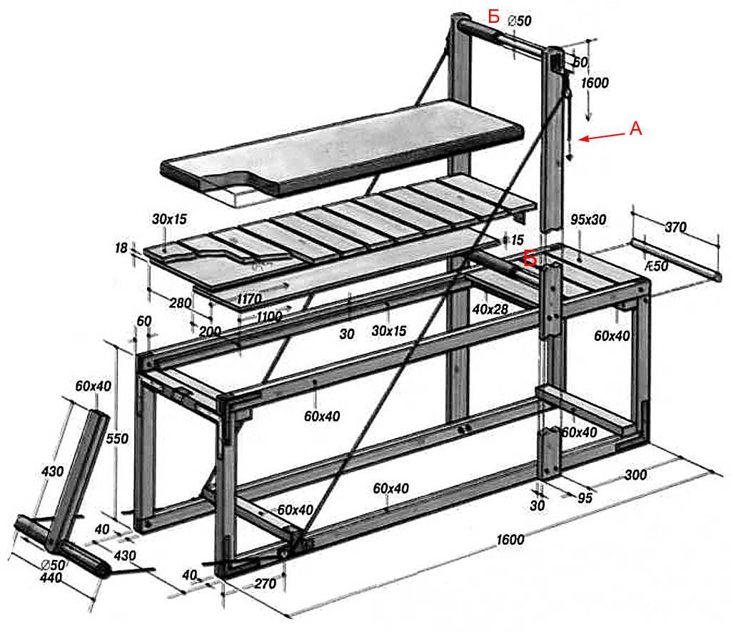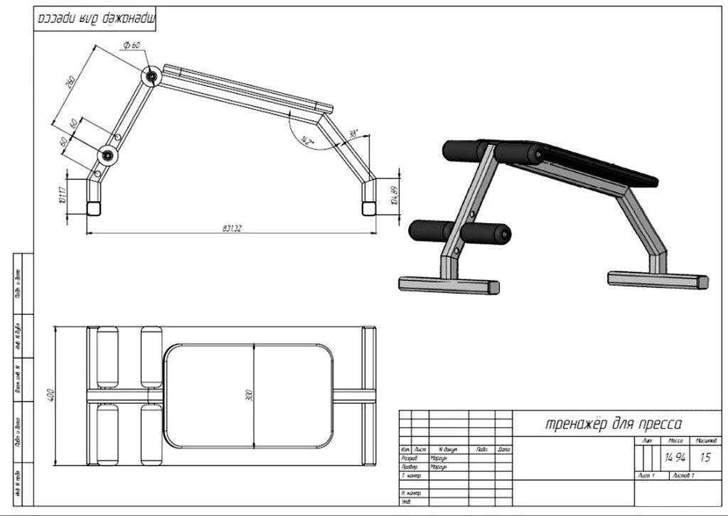 Чертеж гиперэкстензии поможет сделать ее самостоятельно