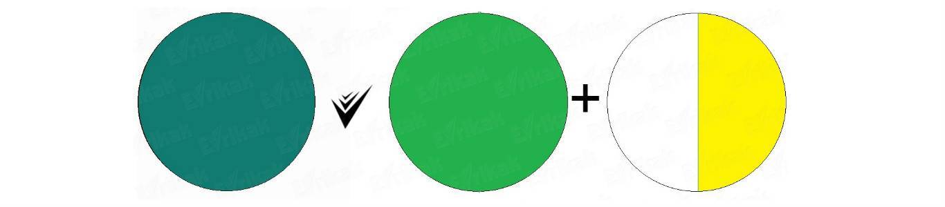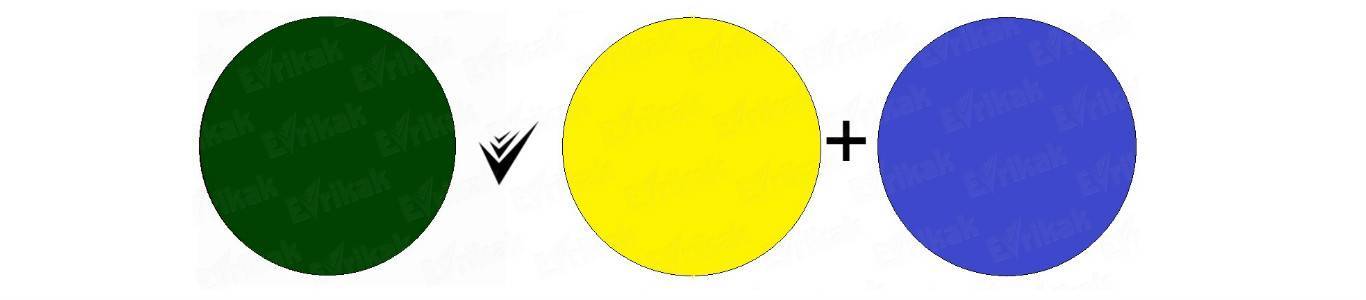 ?Внимание! Качество исходных компонентов влияет на насыщенность зеленого цвета. Чем интенсивнее базовые тона, тем ярче будет результат смешивания.