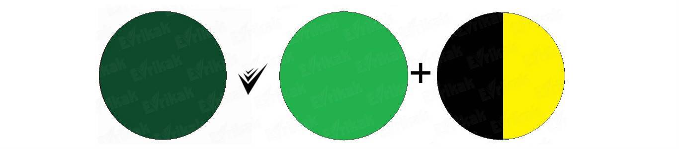 Темно-зеленый цвет достигается прибавлением черного в половинном объеме.