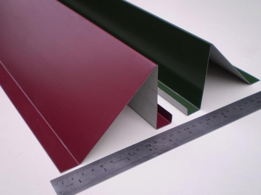 - уголок крепится на гребнях волн металлочерепицы. Как правило, он упирается передней планкой в ступеньку (рельеф).