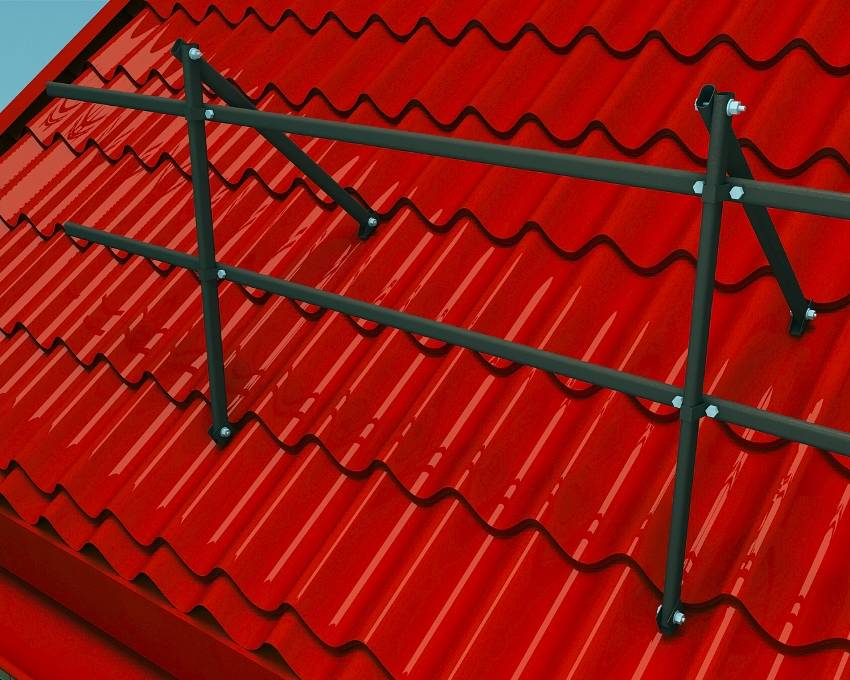 - опор и кронштейнов нет, уголок прикручивается сразу к кровле.