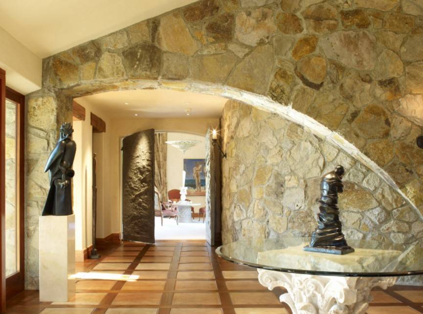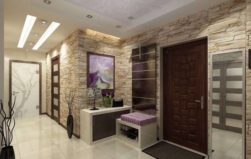 Каменная отделка всей прихожей или отдельных ее участков – очень необычный и стильный вариант дизайна интерьера прихожей. Материалы и инструменты для выполнения такой эффектной отделки доступны во всем своем многообразии и благоприятной ценовой политике.
