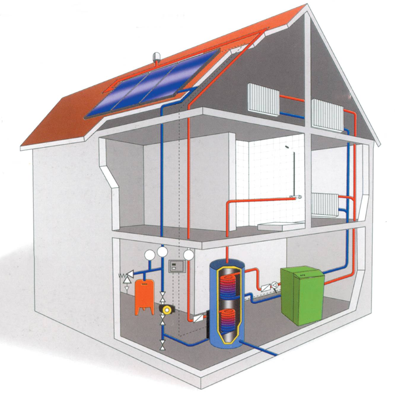Традиционное солнечное теплоснабжение реализуется в двух вариантах систем: