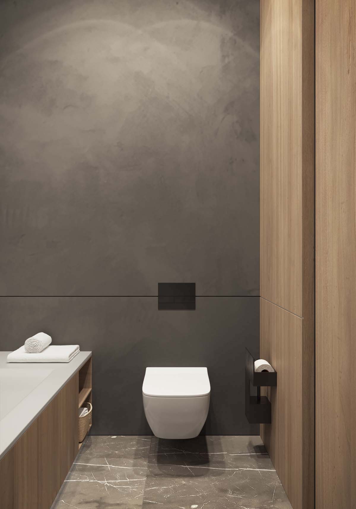 Также стоит ввести элемент типа фотообои или интересный узор (например, выложенный из плитки), который поможет выявить глубину и привнесет приятную атмосферу в туалет. Этот тип аранжировки можно наносить на всю стену или на ее части.