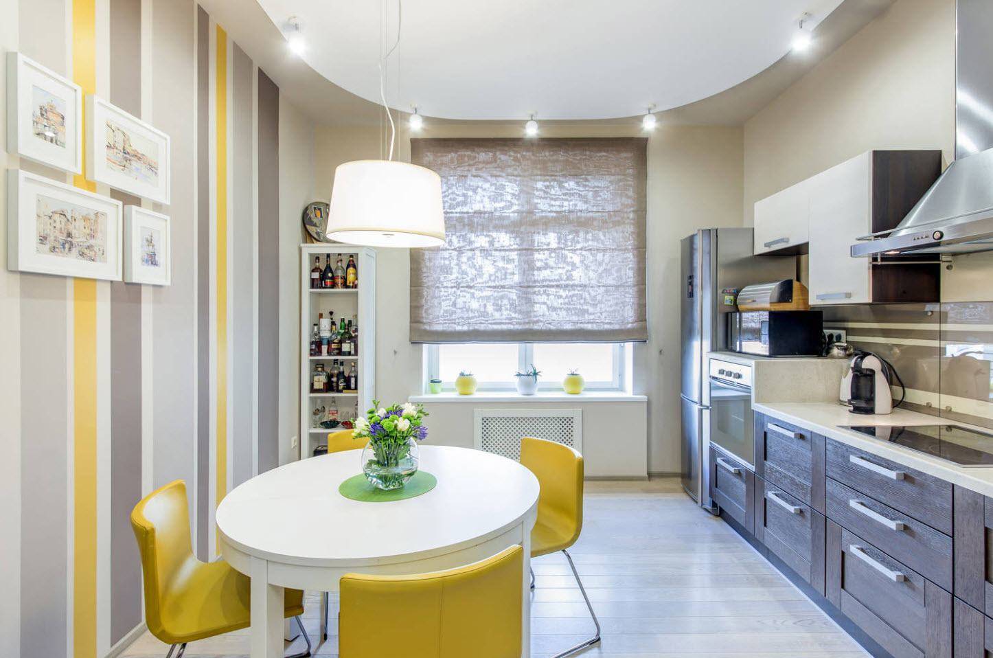 В галерее, которая представлена в этой статье, находятся фотографии самых интересных и красивых интерьеров с обоями в кухне и столовой в главной роли.
