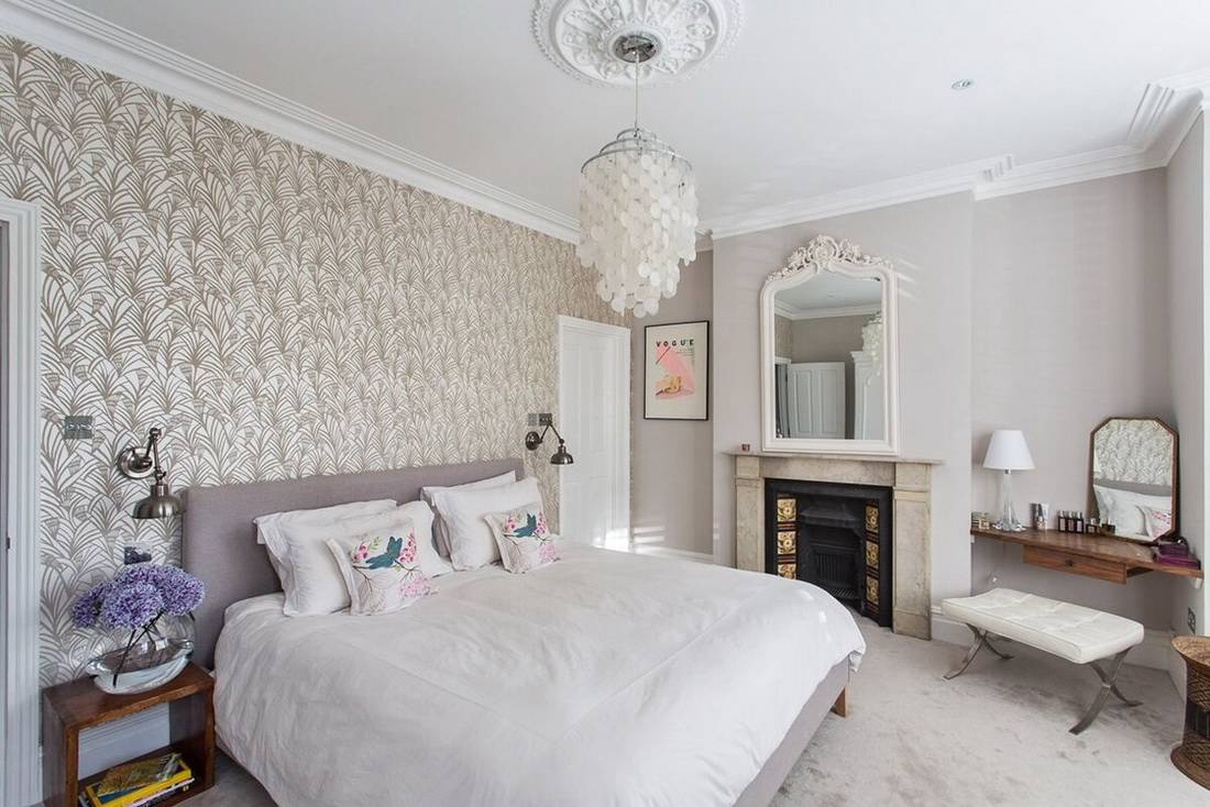 Теперь поговорим о том, как красиво поклеить обои в спальне. Мы уже отмечали, что чаще всего для создания динамичного и интересного интерьера используют сразу два типа обоев: более яркий клеится за кроватью. Обои над кроватью в спальне могут быть однотонными и узорчатыми.