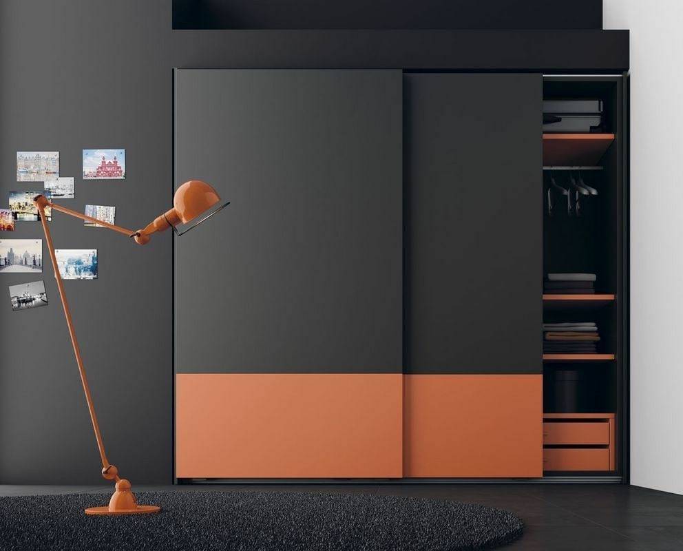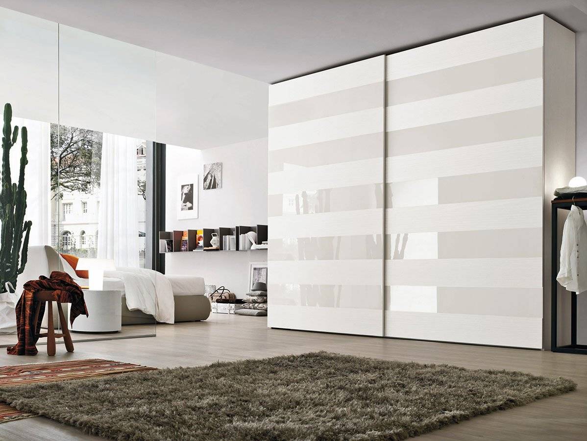 Если говорить о популярности тех или иных моделей, то на сегодняшний день в тренде полностью гладкий матовый фасад. Однако, если этот вариант вам кажется слишком скучным и сдержанным, можно добавить к нему красивый декор. Это могут быть параллельные линии в горизонтальном направлении, они разделят ваш шкаф-купе в самой середине, можно разделить двери на одинаковые прямоугольники или создать небольшой геометрический рисунок.