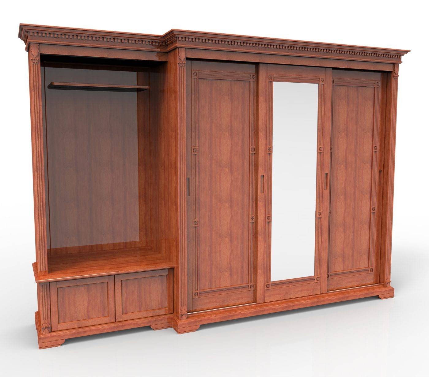 Натуральное дерево – материал, который традиционно используется для создания самой разной мебели для дома. Прочная, надежная, экологически чистая и безопасная древесина помогает создать в любом доме атмосферу тепла и комфорта. Деревянный шкаф идеально вписывается в классический и современный дизайн. Дерево великолепно сочетается с другими отделочными материалами. Оно очень пластично, поэтому часто используется для создания сложных моделей с резьбой.