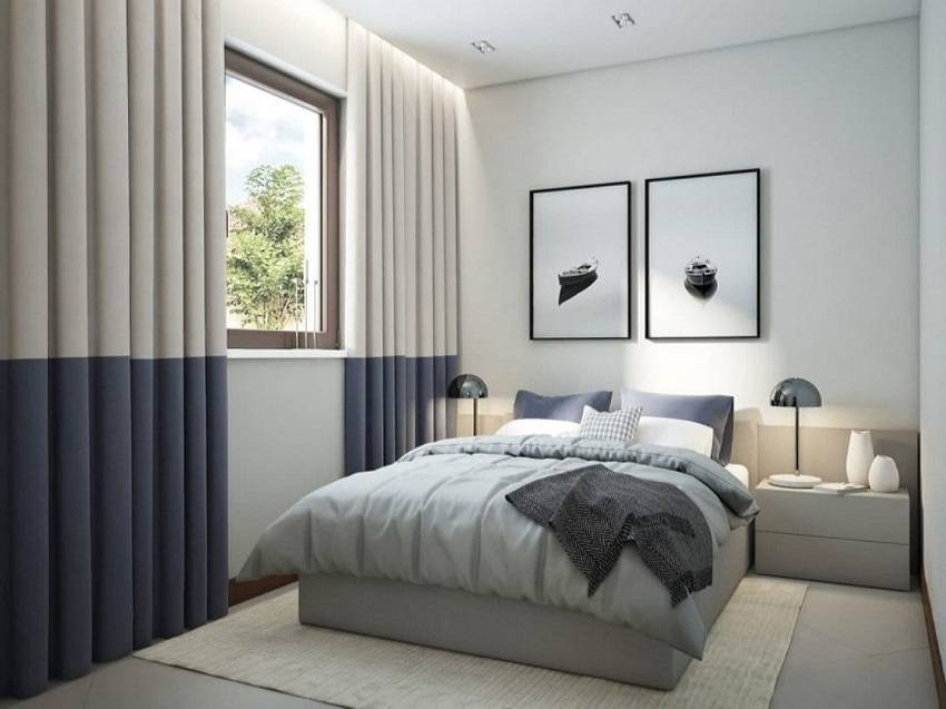 Вы задаетесь вопросом, как отделать стены, чтобы маленькая спальня выглядела немного больше? Делайте ставки на яркие цвета, но не бойтесь сочетать два цвета. Умело подобранные оттенки не будут перегружать небольшое пространство.
