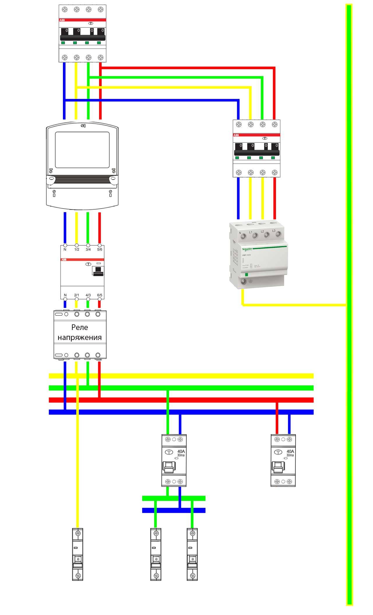 Теперь давайте рассмотрим, что представляет собой схема подключения УЗИП в энергосеть на примере частного дома.