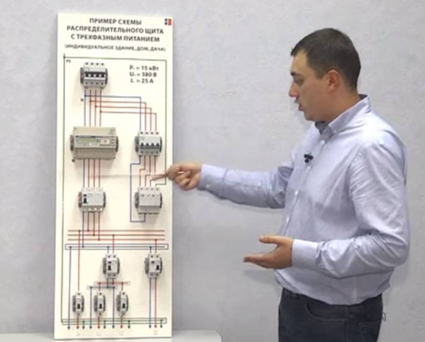 Пояснение к схеме: А, В, С – фазы электрической сети, N – рабочий нулевой проводник, PE – защитный нулевой проводник.