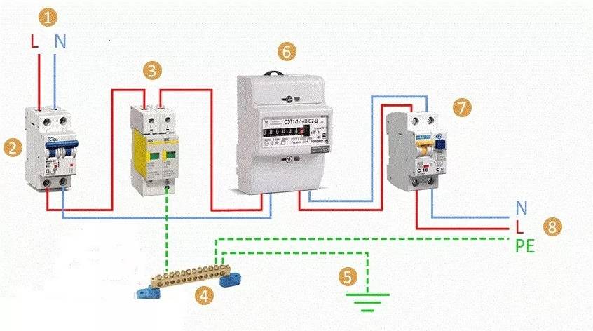 Теперь давайте рассмотрим, что представляет собой схема подключения УЗИП в энергосеть на примере частного дома.