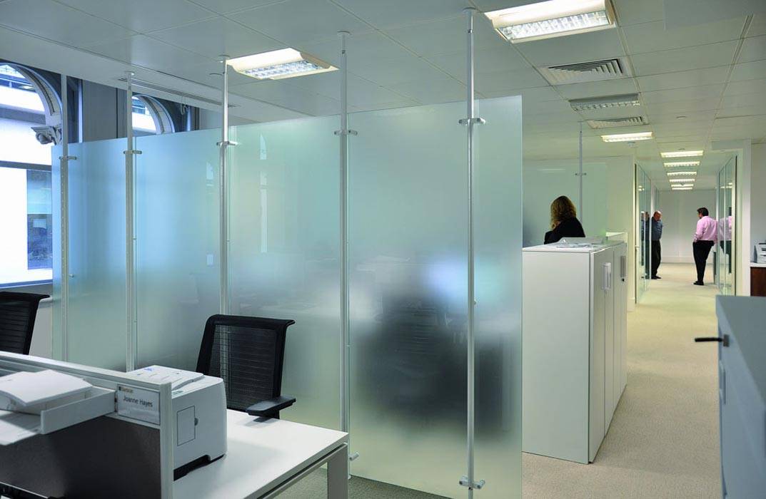 Стеклянные конструкции с жёстким креплением призваны заменить обычные межкомнатные стены. Это хорошее решение для офисов и помещений, в которых ощущается недостаток естественного освещения. В помещениях компаний прозрачные стены позволяют обозначить рабочие места клерков и при этом не создавать ощущения огромного улья с большим количеством сот. У каждого работника имеется собственное место, и при этом сохраняется целостность пространства.