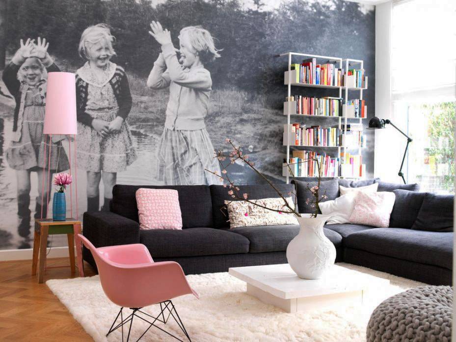 Различные варианты можно применить и в гостиной. Здесь основополагающие стили – классика, модерн, прованс, хай-тек. 3d пейзажи, объемные графические изображения, имитации камня или кирпичной кладки прекрасно подойдут для этой комнаты, в зависимости от ее стиля.