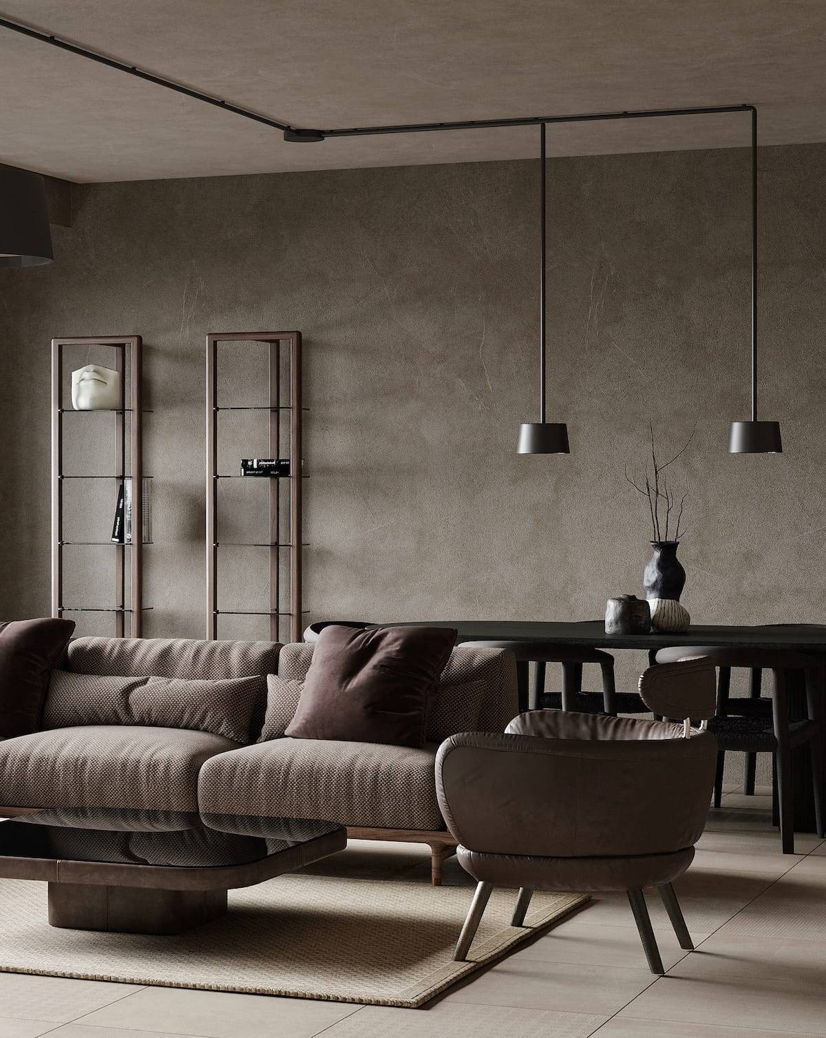 Цветовая палитра для интерьеров в стиле минимализм ограничена. Минималистичные интерьеры обычно представлены одним или двумя цветами, обычно нейтральными, такими как белый, черный и серый. Самый популярный цвет — белый, так как он создает чистый вид и может сделать пространство более ярким. Другие варианты включают натуральные оттенки, такие как кремовый, бежевый, серый, оттенки коричневого и приглушенный желтый.