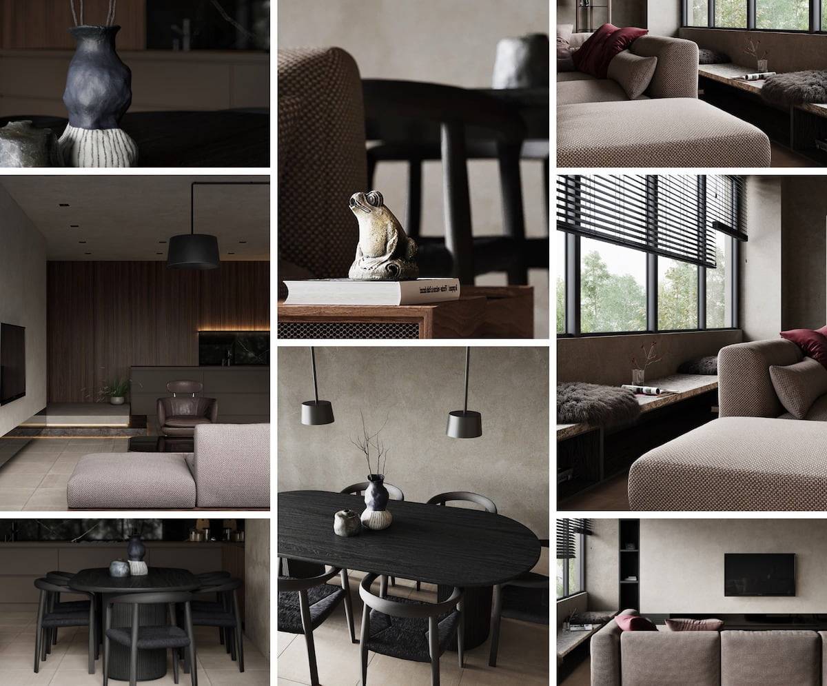 этап выбора и разработки стиля состоит из подбора подходящих фактур, цветовой палитры и деталей декора;