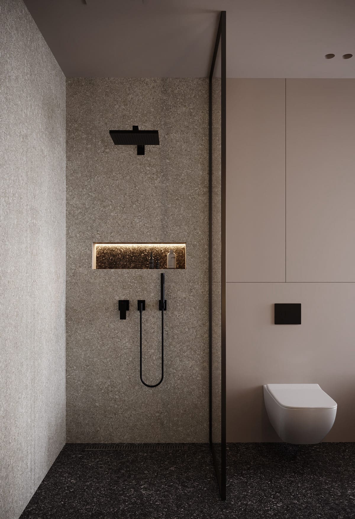 Графитово-белая комната с туалетомИсточник ko.decorexpro.com
