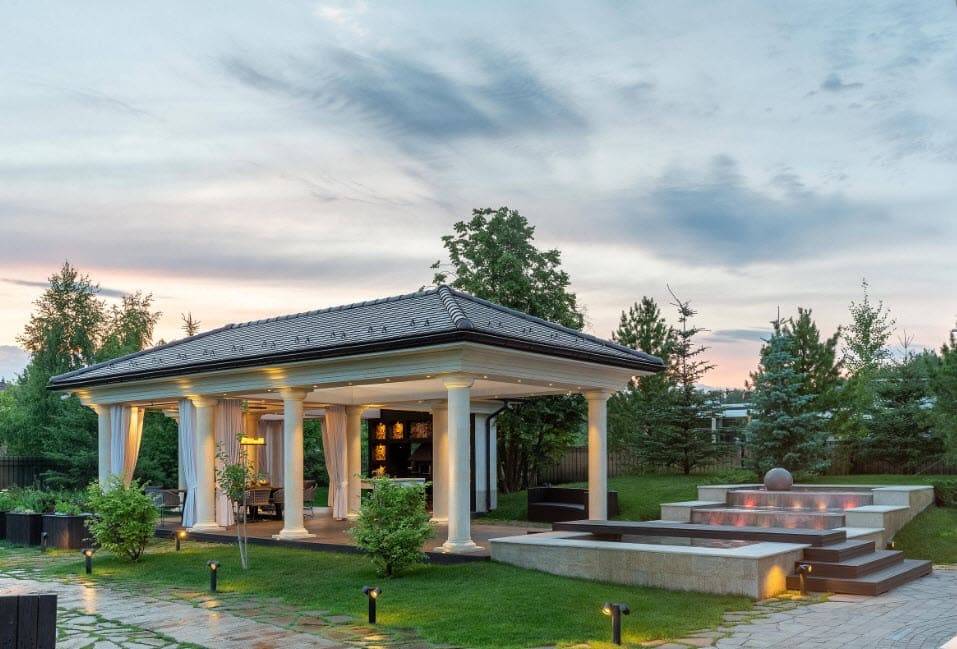 Дополнительные постройки. Баня, терраса или беседка – это конструкции, которые должны находиться на участке коттеджа любого человека, ценящего уют и комфорт. Благодаря этим зонам отдыха можно повысить функциональные возможности участка и создать прекрасные места для того, чтобы наслаждаться свежим воздухом.