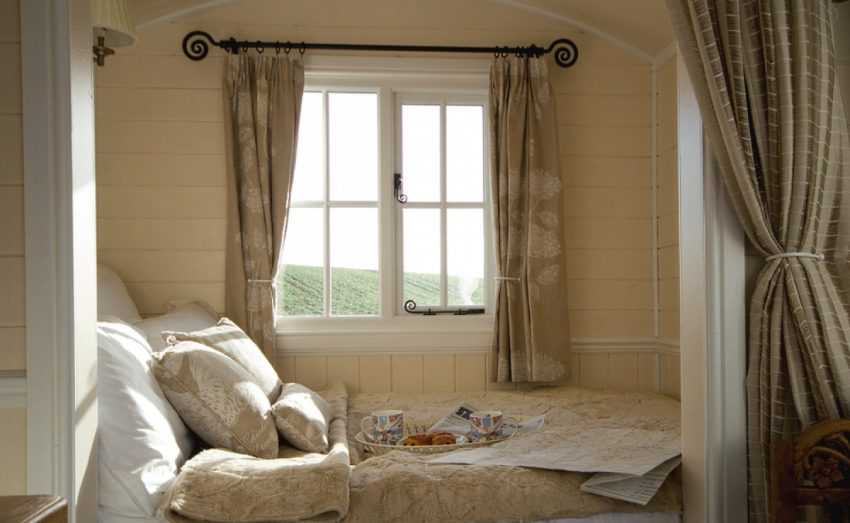 Перед тем как выбрать шторы в спальню, надо измерить окно, а также определиться с видом карниза. Он может быть сделан в виде струны или штанги