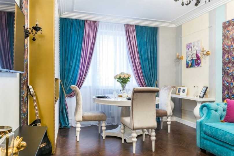 Комплект занавесей должен органично вписаться в интерьер, быть созвучным с остальными декорами по стилистике, цветовому оформлению