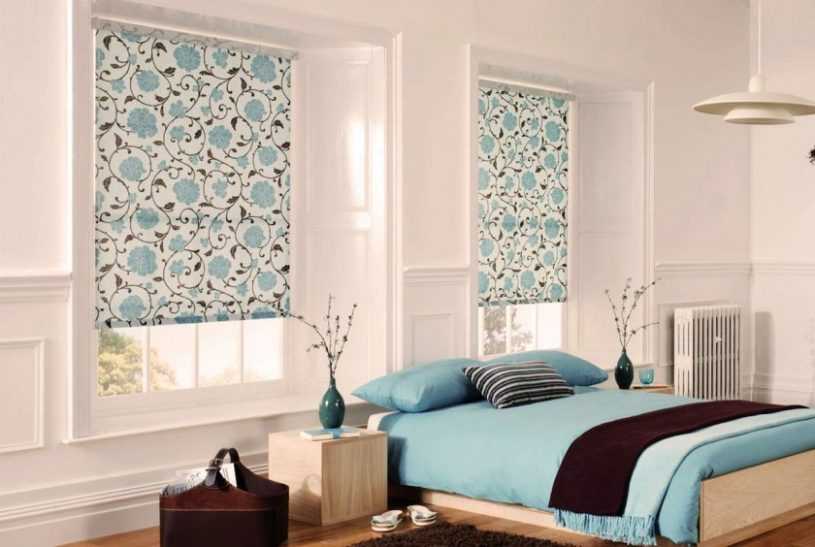 Если стены и мебель в вашей спальне достаточно яркие, то для окон подойдут белые ажурные римские шторы