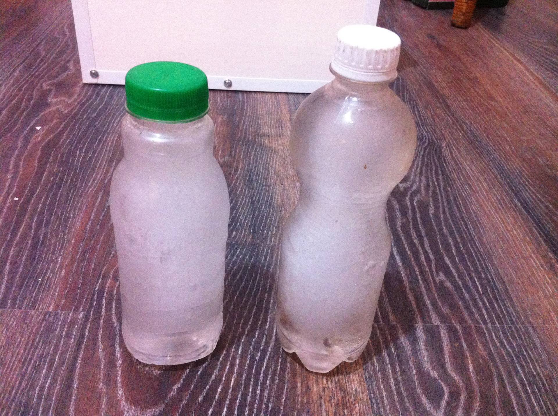 В бутылку насыпают поваренную соль, чтобы на дне образовался слой в 2 см, и наполняют емкость водой на 9/10 (на 1 литр воды приходится 6 столовых ложек). Если превысить этот параметр, замерзшая жидкость может разорвать бутылку. Крышку следует закрыть как можно плотнее и взболтать емкость до полного растворения соли. Поместите бутылку в морозильную камеру холодильника, и через 12 часов достаньте новенький «аккумулятор холода».