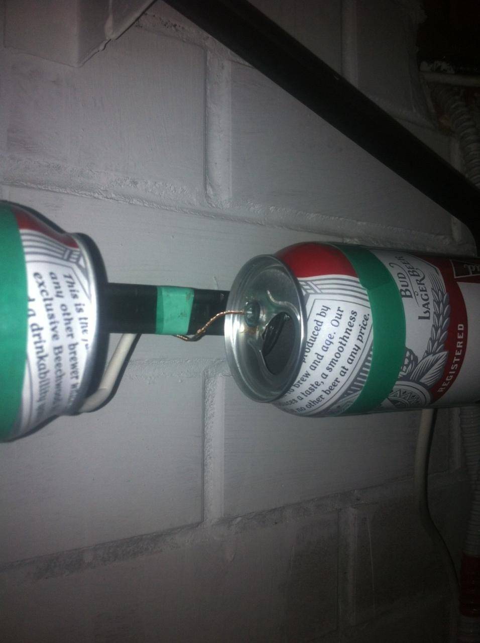 - Закрепите проводники к банке: прикрутите жилы к саморезам, саморезы прикрутите к банке, предварительно очистив поверхность банки от краски. Со знанием дела можно припаять проводники к олову;