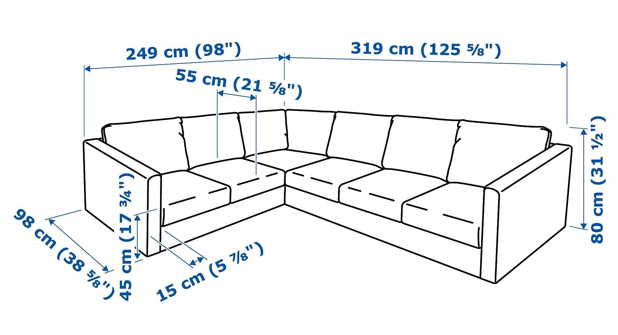 Стандартные габаритные размеры угловых диванов находятся в пределах: