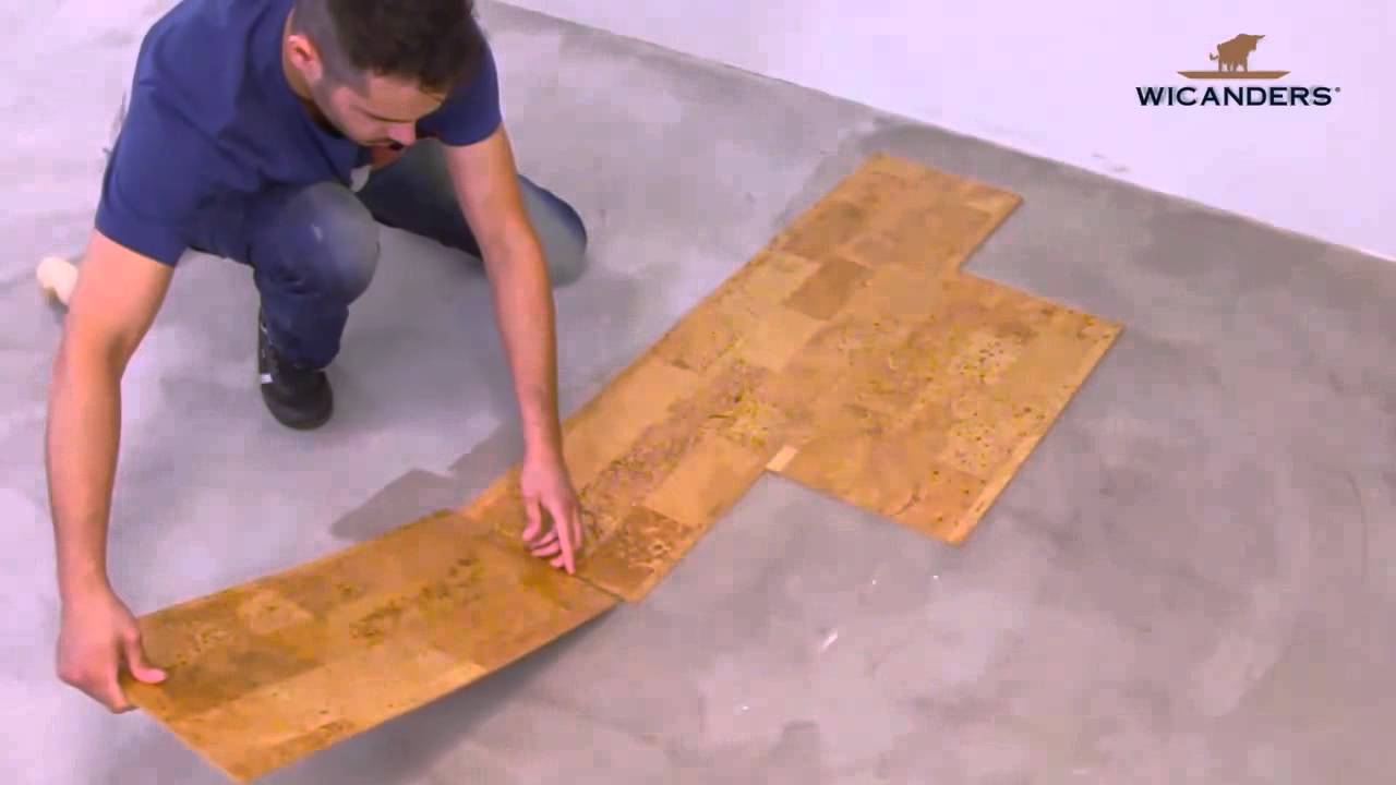 Клейкий пробковый пол следует прикрепить к основанию с помощью контактного клея. Начинайте приклеивать доски с центра комнаты. Предварительно наметьте весь пол, отметьте карандашом центр. Раскатайте клей по полу валиком, столько листов клея, сколько вы можете уложить за один раз (мы рекомендуем начинать с 2-4 плит). Также промокните листы клеем и оставьте на 10-15 минут.