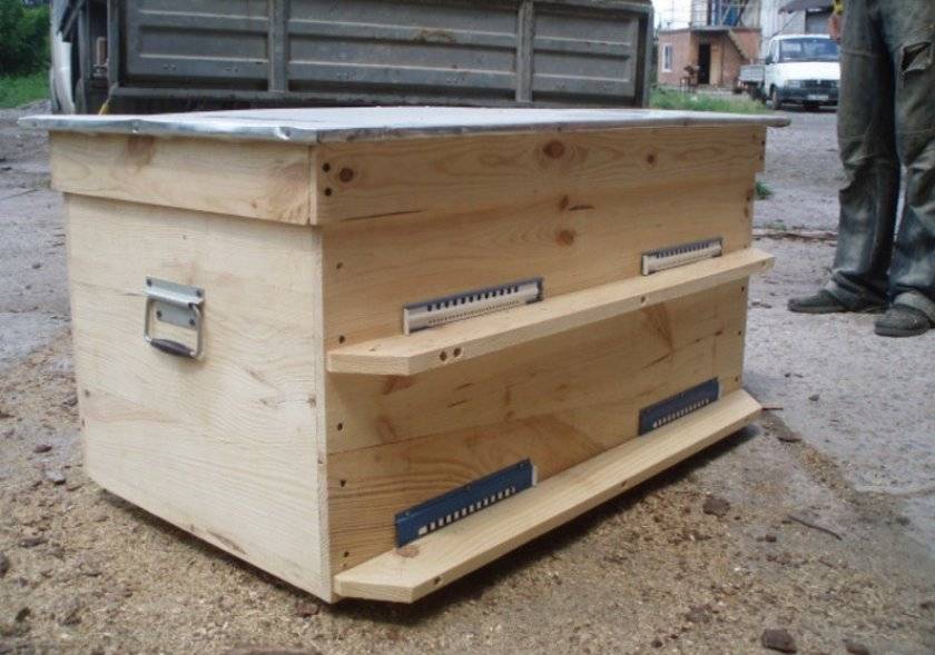 Дно. Выделяется 2 основных типа — съемное и стационарное (неотъемное) днище. Наиболее предпочительным является первый вариант, так как отделение дна от корпуса дает возможность очистки или проведения лечебных мероприятий, не затрагивая рамок, то есть не прерывая обычную жизнедеятельность насекомых
