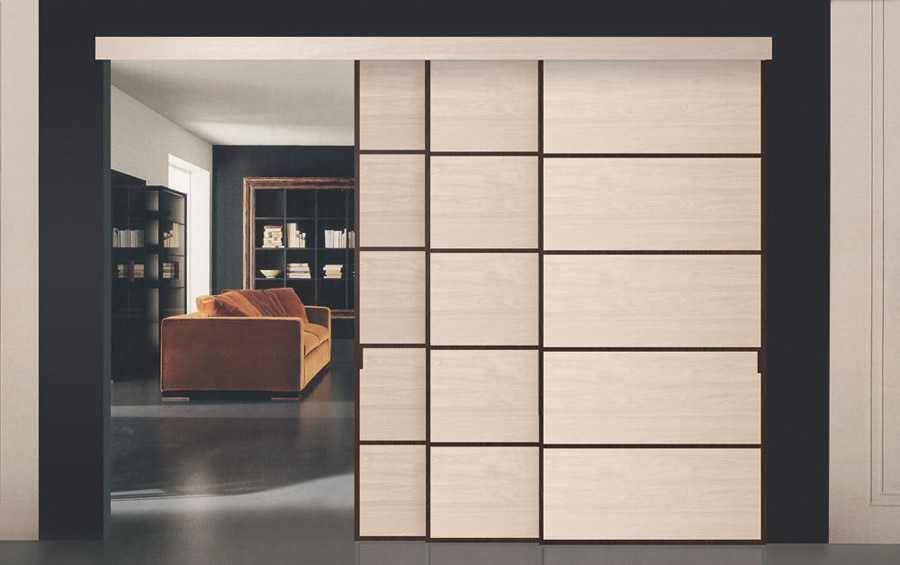 - полотна раздвижной двери производятся из разных материалов, используются разнообразные приемы декоративной отделки;