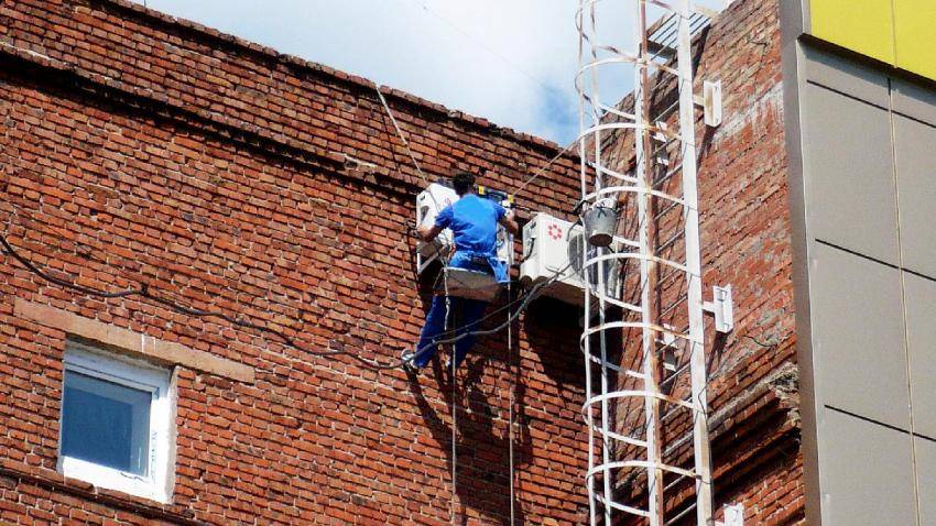 Прежде чем приступать к монтажу наружного блока, нужно убедиться, что прочности балконного ограждения либо стены достаточно для того чтобы выдержать вес изделие. Наиболее мощные модели весят до 60 кг и даже более. В среднем же бытовые наружные блоки весят 10-15 кг и обычно никаких проблем с их размещением не возникает. Стена и все используемые крепежные элементы должны иметь минимум двукратный запас прочности.