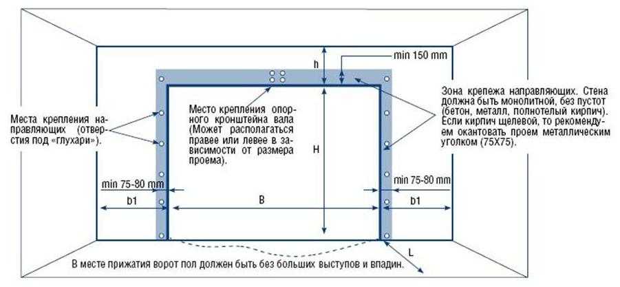 Установка секционных ворот требует предварительной подготовки проема. Проем, во-первых, должен иметь достаточную несущую способность, во-вторых, по бокам и сверху должно быть достаточно места для установки направляющих, в-третьих, он должен быть ровным. Исправим по порядку.