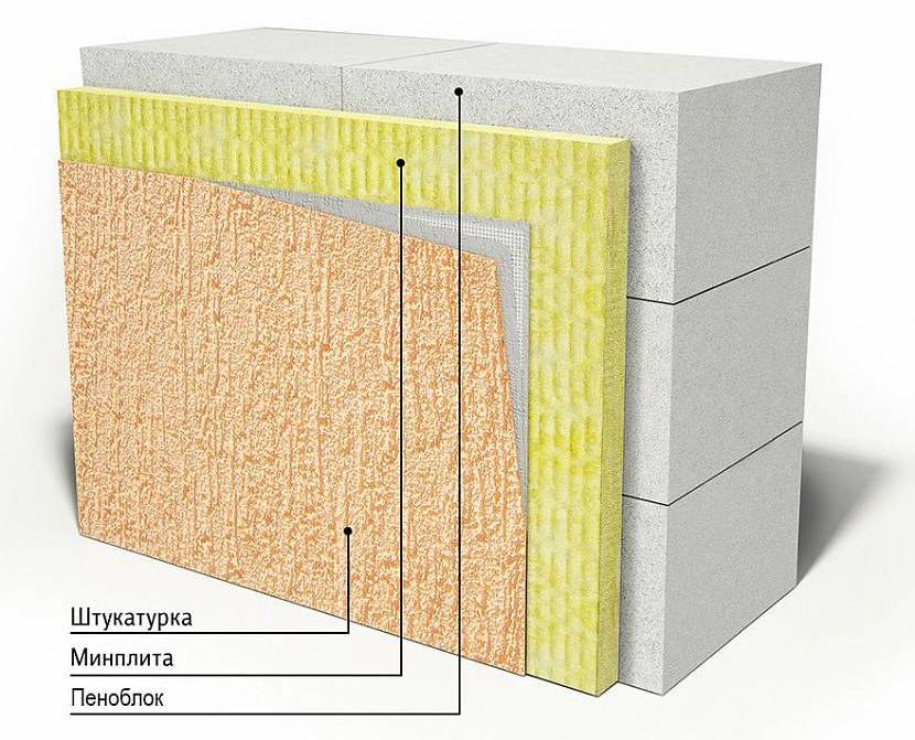 Состав пирога теплозащиты при внешней установке минеральной ваты на пенобетонную несущую стену: