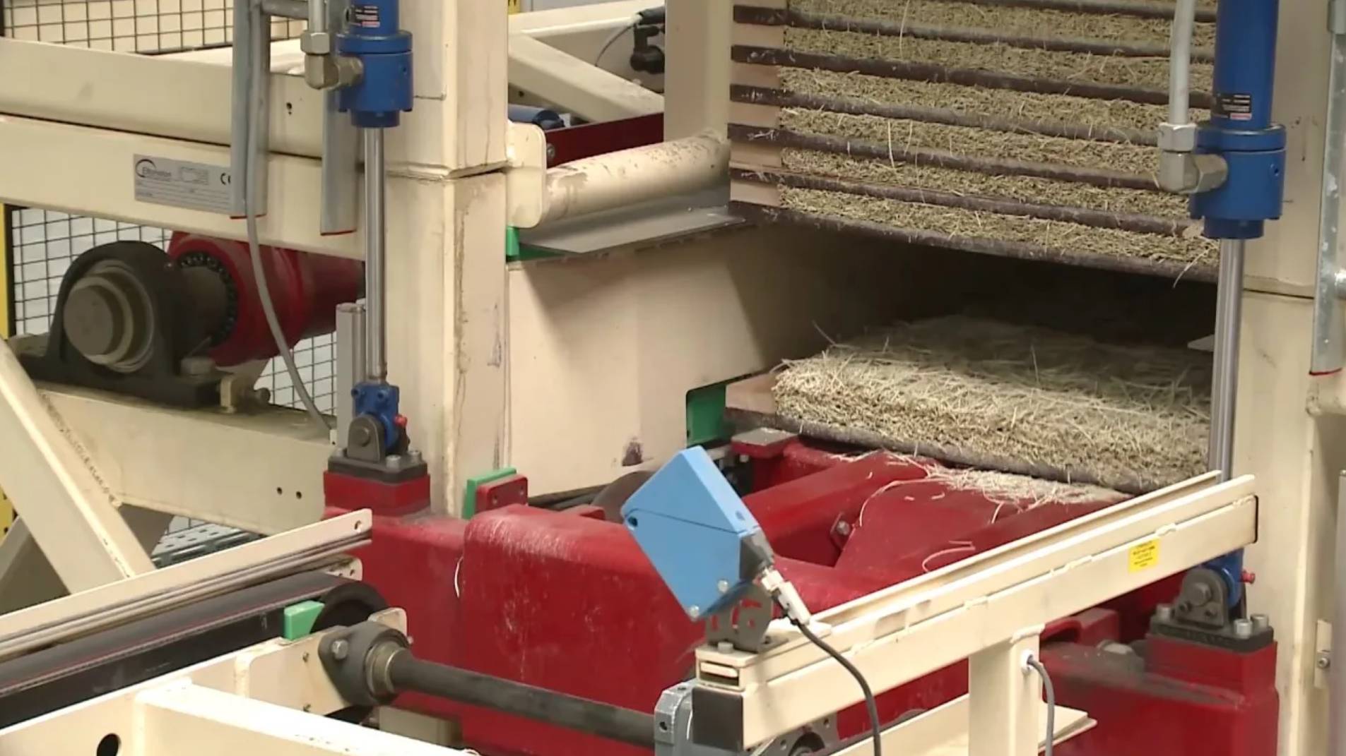 В целом для производства фибролитовых плит используют длинную стружку и портландцемент. Только стружку здесь используют не в виде отходов после обработки пиломатериалов – ее получают на специальных станках в виде тонкой и узкой перекрученной ленты, после чего она подвергается процессу минерализации хлористым кальцием (CaCl2) или жидким стеклом (Na2O(SiO2)n или K2O(SiO2)n – силикат натрия и/или калия). После такой процедуры древесину смешивают с цементом и водой, формируя плиты или блоки с нужными геометрическими параметрами под давлением 0,5 МПа или 4,93462 атм. Затем изделия помещают в пропарочную камеру, где они затвердевают, достигая 20% влажности.