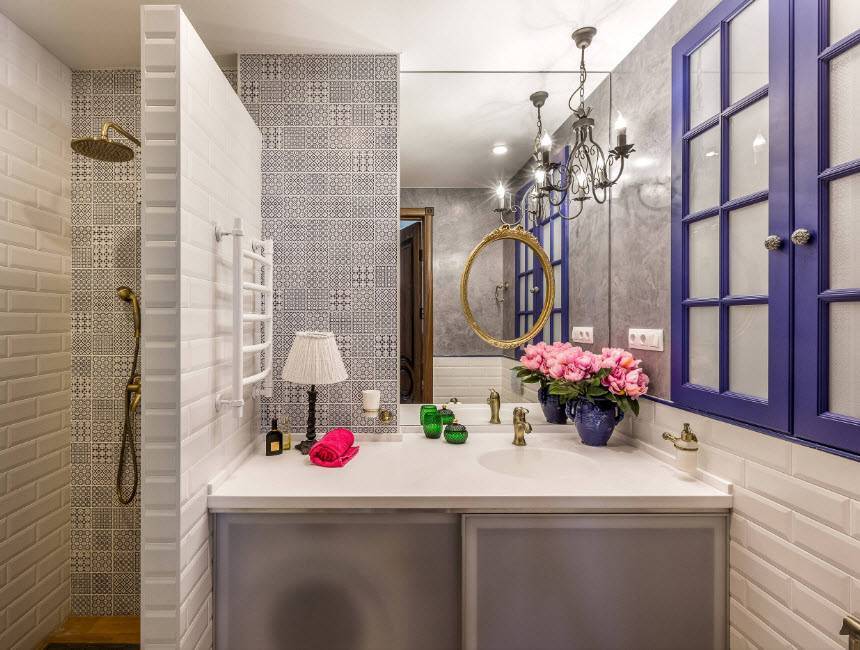 небольшая плитка нестандартных размеров в интерьере ванной комнаты