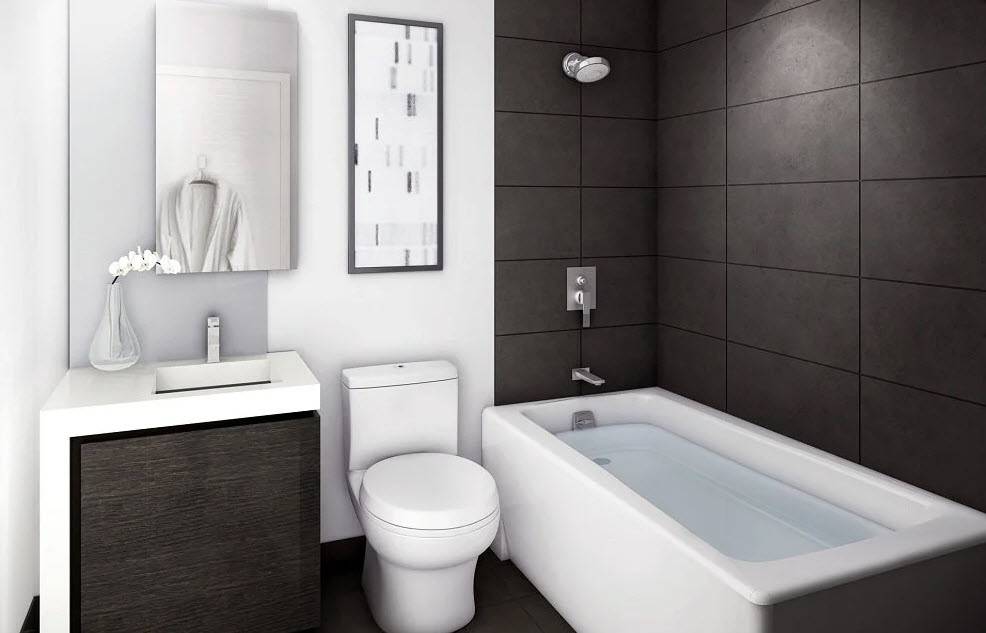 Те, кто предпочитает яркий контраст, могут положить в ванной темную плитку на пол и стены, а сантехнику поставить белого цвета. Для этого используйте крупный кафель без разводов. За данной плиткой просто ухаживать, поскольку рисунок невыразительный, на ней не так сильно будут видны разводы от воды.