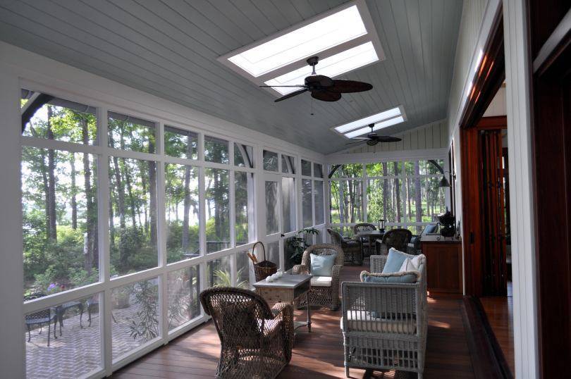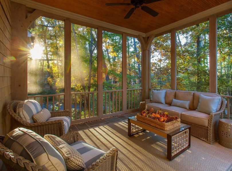 Еще веранды бывают проходные — это когда для того чтобы попасть в дом вы проходите через нее. Такие пристройки располагают с лицевой части дома, иногда — со стороны двора, если из дома есть два выхода. Вход в непроходные только из дома. Попасть на улицу с такой веранды невозможно.
