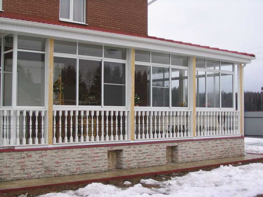 Важно: веранды с капитальным основанием и легким каркасом можно застеклить с не меньшим успехом, чем полностью кирпичные или блочные сооружения.