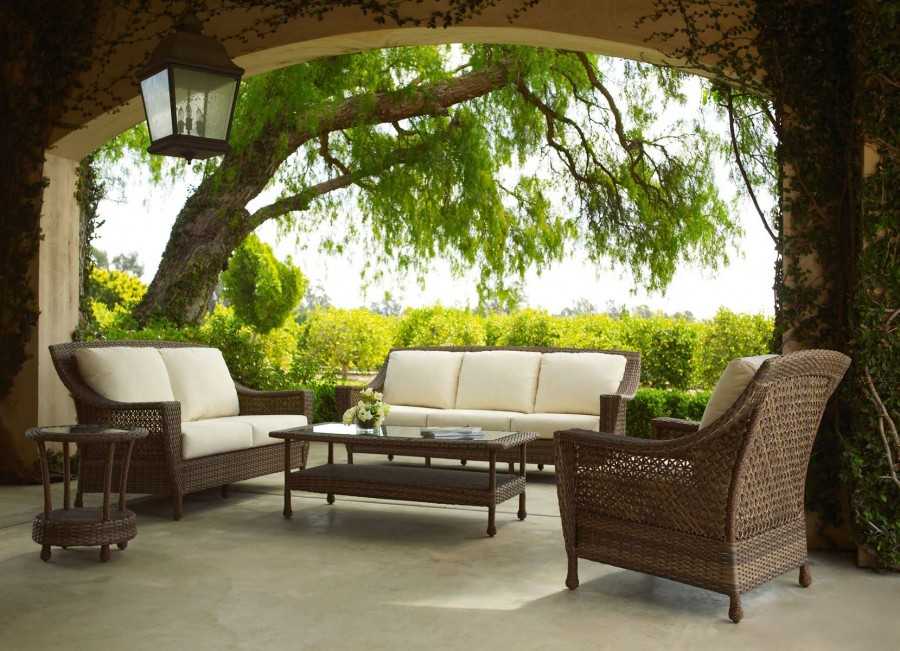 На самой площадке устанавливается переносная или стационарная мебель, в том числе лавочки, плетеные кресла, шезлонги, зонтики или даже барбекю. Если же в средствах вы стеснены, логичным решением станет сделать мебель для веранды своими руками.