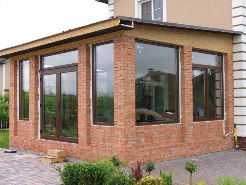 Если металлическая или деревянная конструкция считаются универсальными и могут быть использованы практически для любого типа частного дома (каркасного, сруба, капитального), то кирпичная веранда с пластиковыми окнами подойдет только для капитальной постройки.
