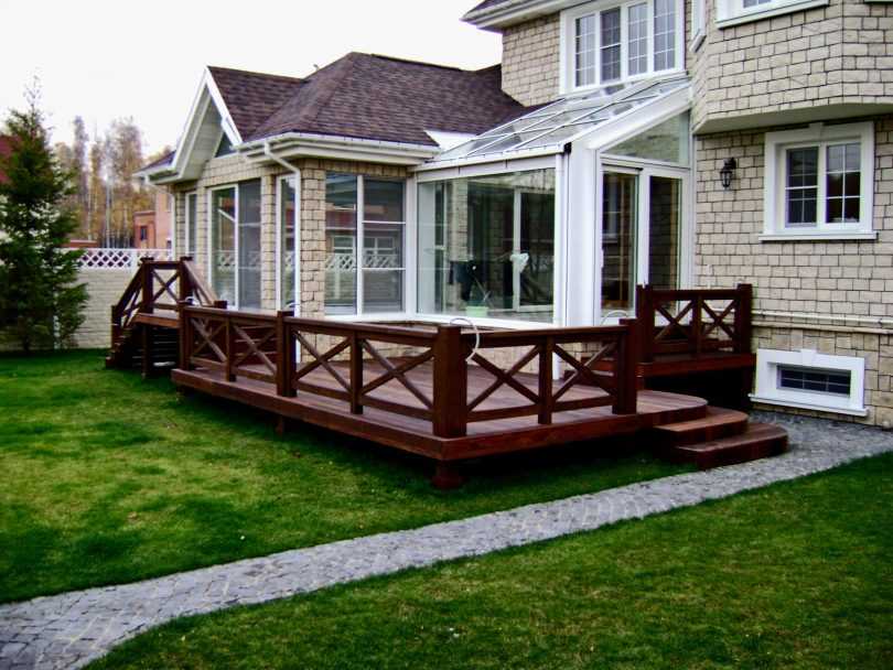 - Внешне схожа с террасой, но имеет фундамент, который выполняется отдельно от основного здания