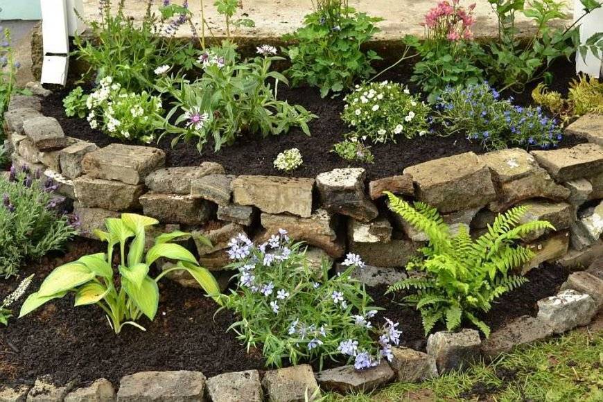 Если клумба небольшая и невысокая, ее можно обложить красивыми булыжниками или кирпичом. Такой цветник при необходимости передвигается без особых усилий.